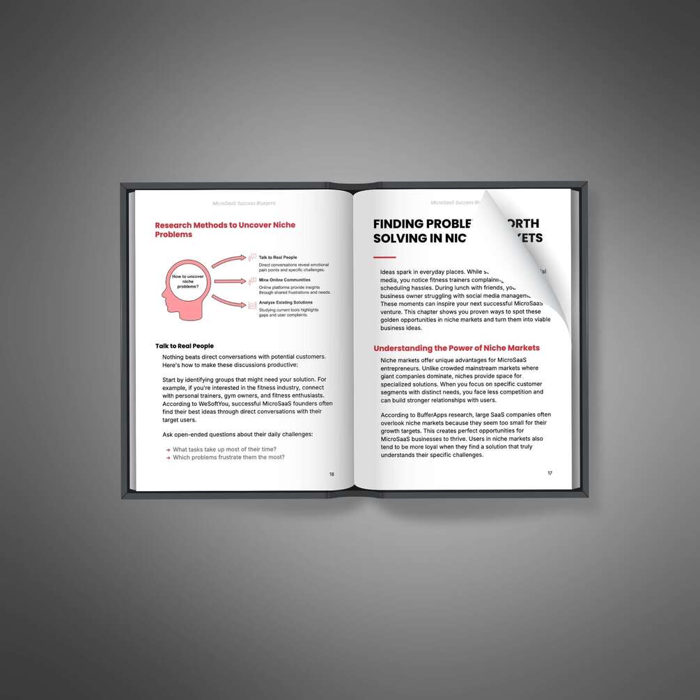 This ebook teaches your customers how to build a successful MicroSaaS business by identifying niche markets, validating ideas, and creating solutions that generate steady income. It provides actionable steps and strategies to create software products with minimal resources, making it accessible for anyone ready to start their entrepreneurial journey.